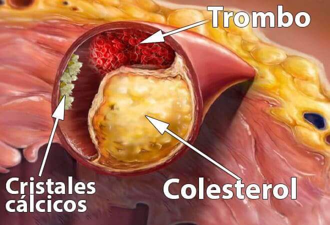 Colesterol Sí, tienen razón. Las placas de colesterol o "placas ateroscleróticas" representan aproximadamente el 65-70% del bloqueo de los vasos sanguíneos.